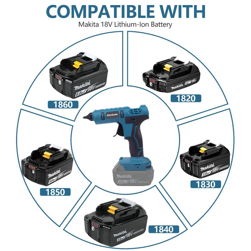 - 【Note:】The Hot Glue Gun Kit DO NOT INCLUDE Battery!!! Compatible with Makita 18V Lithium-Ion Battery, If you have batteries of Makita (1820, 1830, 1840, 1850, 1860), We are compatible, Can buy them. If not, please buy carefully