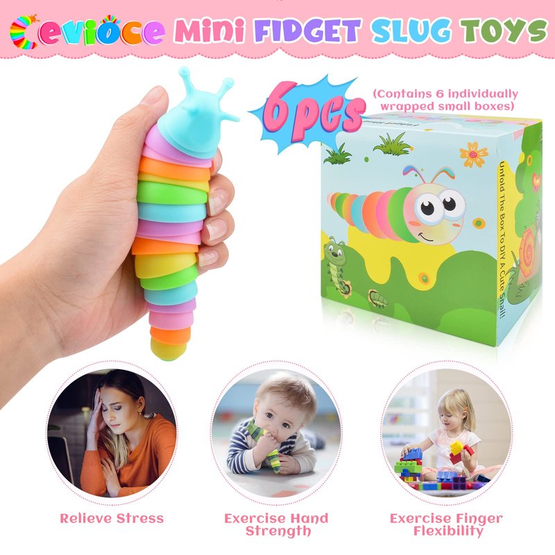 - Fun Fidget Toy Gifts: Slug Toys for all ages. You can play it in any place, such as at home, office, school, etc. It's suitable for Valentine gift, Easter basket stuffers, Halloween gift, Christmas gift, stocking stuffers, etc. Best gift for ADHD, Autism