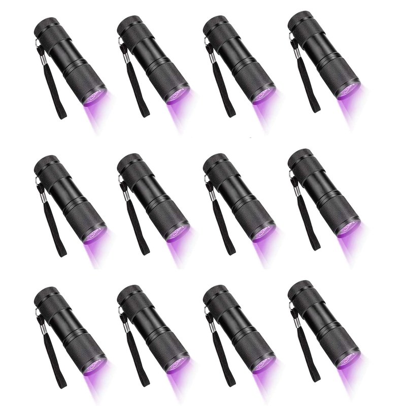 CFIKTE UV LED Flashlight Black Light UV Lights 9 LED Ultraviolet Blacklight Flashlights Pets Urine and Stains Detector on Clothes Carpet Rugs (12 PACK)