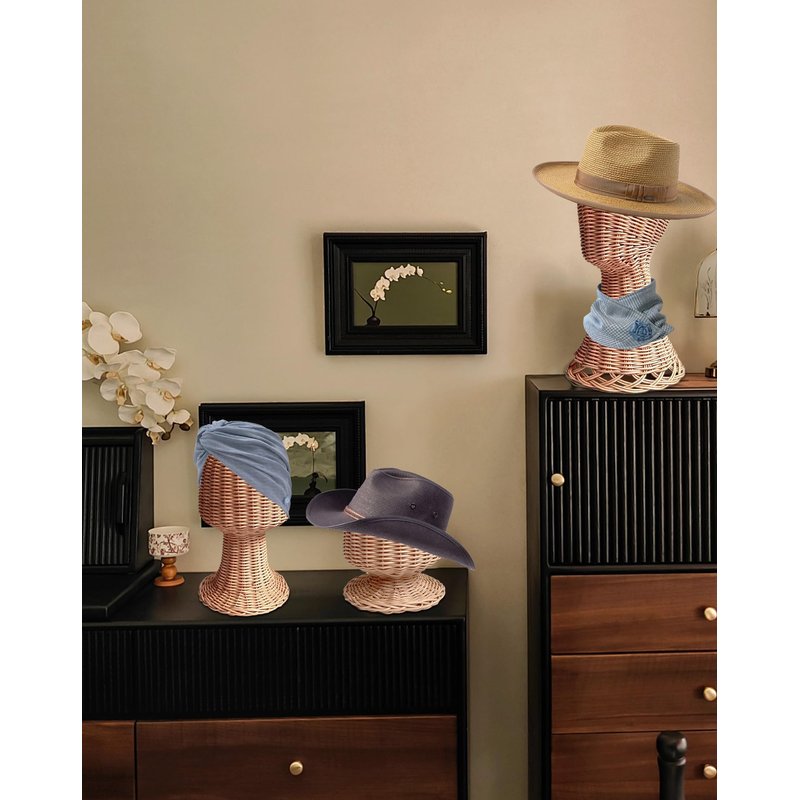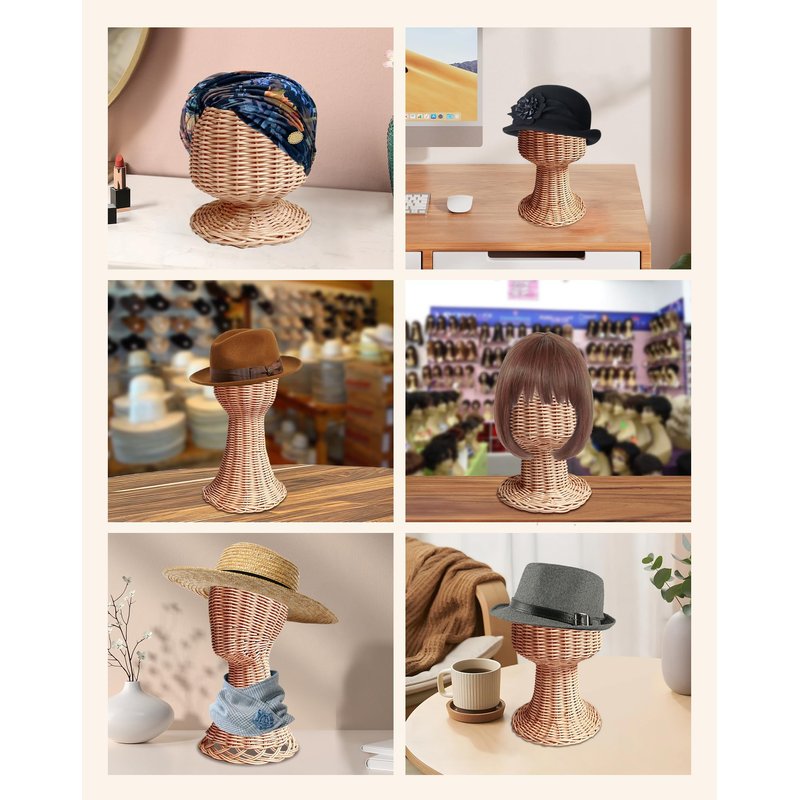- Size Details: The Rattan Mannequin Head Stand is a beautifully handcrafted showcase for hats, caps, and wigs. Its compact size of 11" (H) x 7" (W) x 7" (L) makes it perfect for displaying fedoras, wedding hats, or decorative pieces, suitable for displaying in retail shops, salons, or at home
