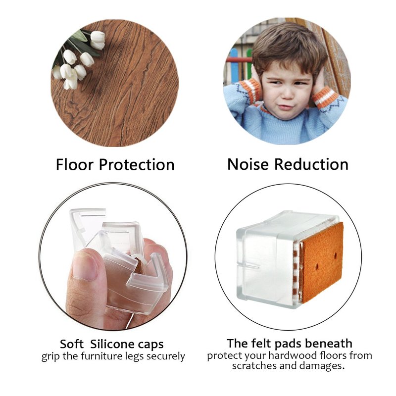 - Floor protection: Soft Silicone caps grip the furniture legs securely; The felt pads beneath protect your hardwood floors from scratches and damages.