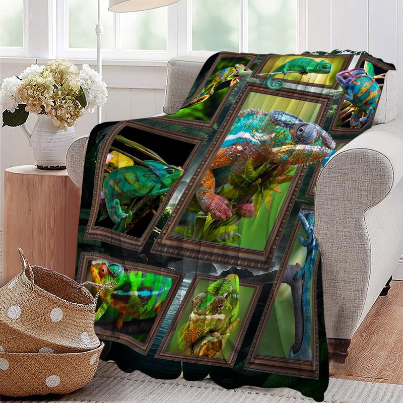 Chameleon Blanket Super Soft Warm Fluffy Flannel Cute Reptile Throw Blanket Cozy Fuzzy Plush Bedding Blanket Gift for Boys Girls Kids Teens Adults Couch Sofa 50"x40"