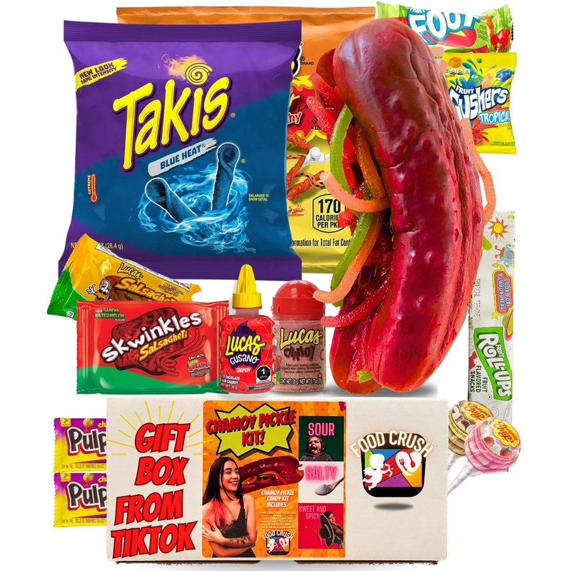 Chamoy Pickle Kit With Blue Takis & Flamin Hot Cheetos-Mexican Candy Gift Box-Tiktok Trend Items-Dulces Mexicanos-(2.4 lbs) 14 Piece Kit by Food Crush