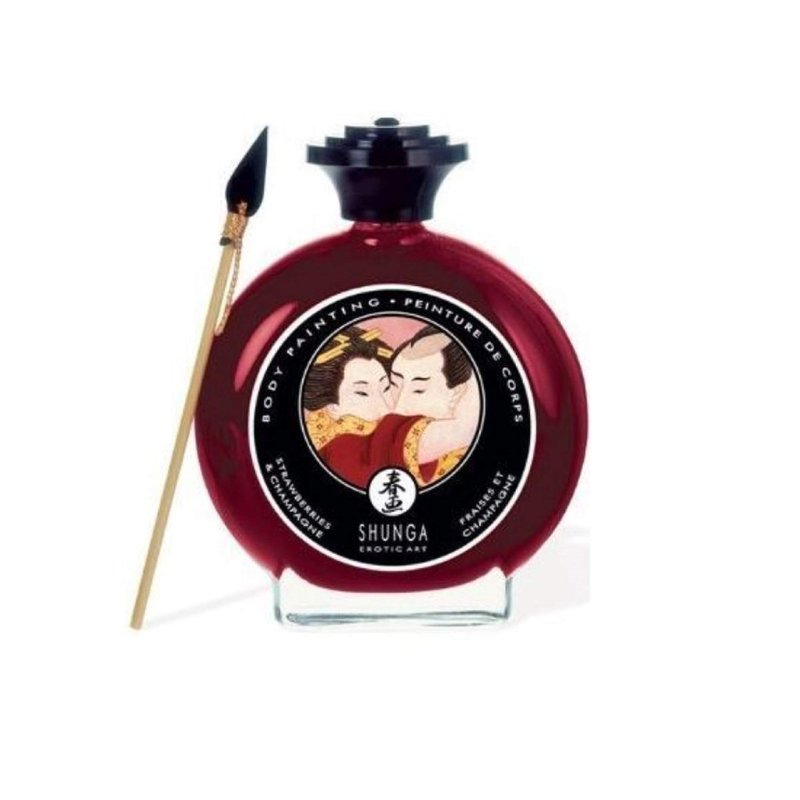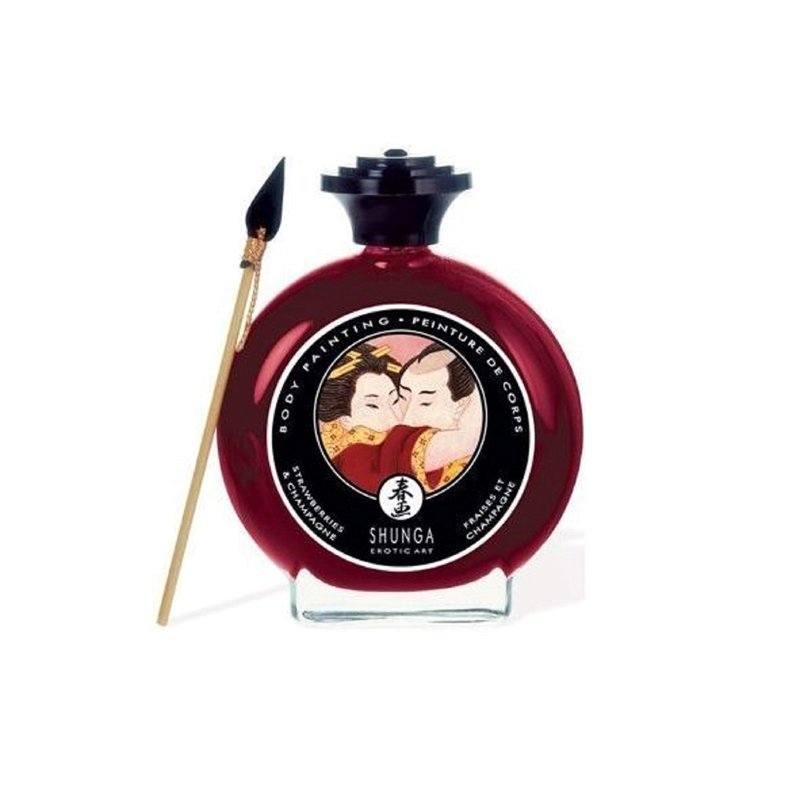 2012 XBIZ Award Winner - International-Based Pleasure Products Company of the Year Combine adult play with romance. Use this aphrodisiac edible body paint to write love poems, draw hearts, flowers, and reveal your artistic side. It's insanely delicious. This listing is for one Champagne and Strawberries bottle.