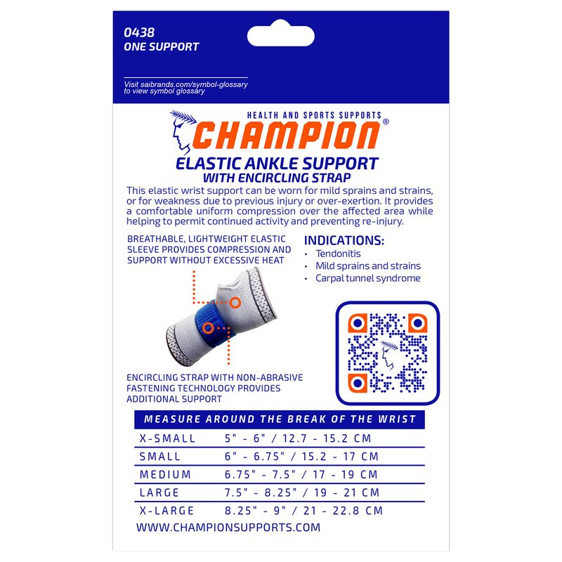 Champion Elastic Wrist Support Compression Sleeve with encircling Strap, Grey, Medium