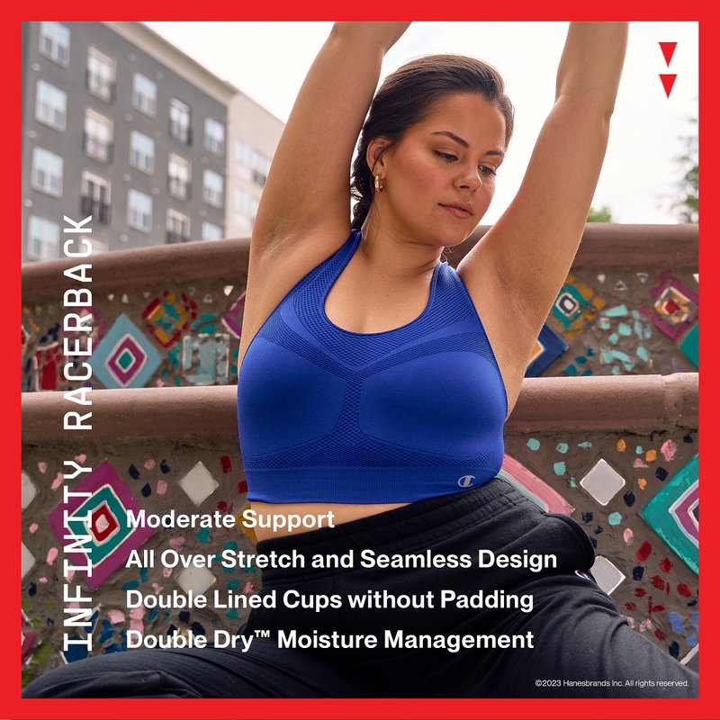 - THE INFINITY BRA - A soft and seamless sports bra with moderate support and all-over stretch designed to help minimize chafing.