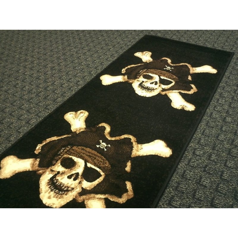 Champion Rugs Pirate Skull Area Rug Design #CR79 (2 Feet X 7 Feet Runner)