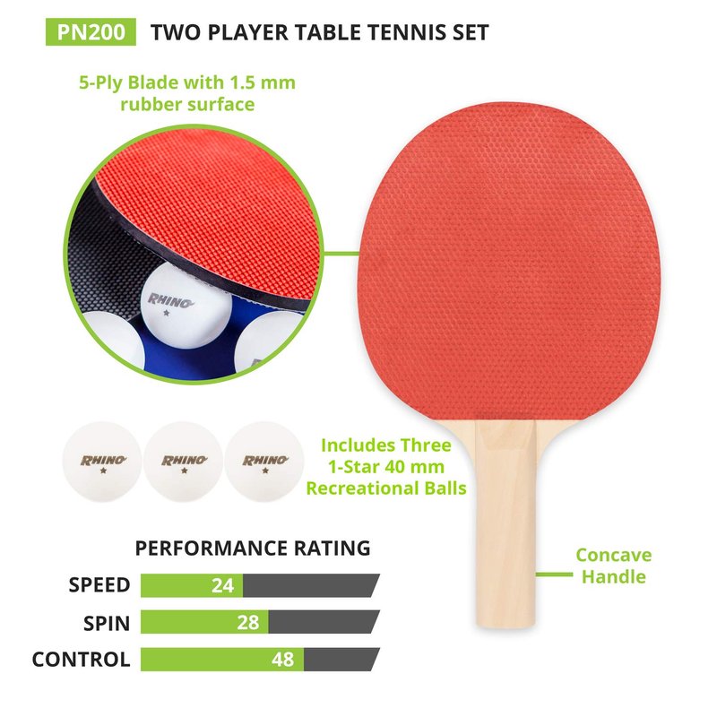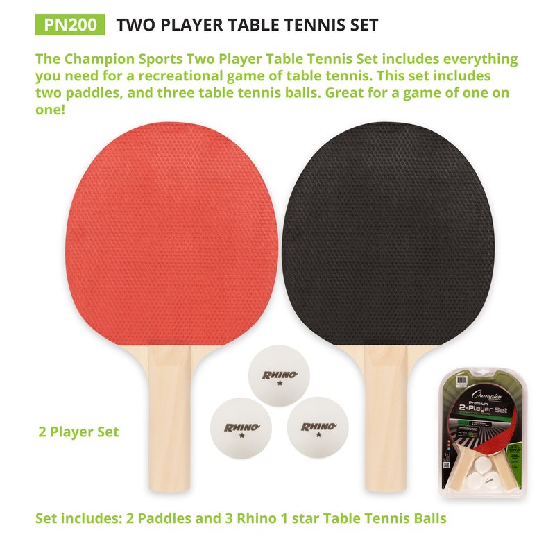 - 2 PLAYER SET: The Champion Sports two player paddle set includes 2 rackets and 3 balls for beginning, intermediate, and advanced players to play one on one games on any ping pong table