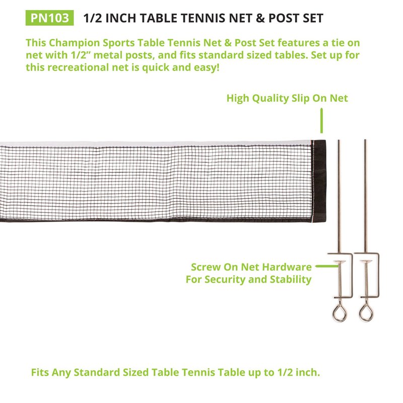 Champion Sports Table Tennis Net & Post Set, 1/2"