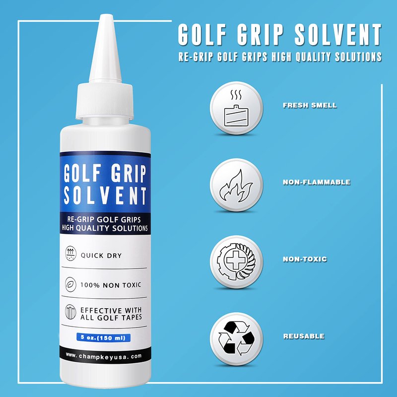 - 5 Oz Grip Solvent : The high quality Grip Solvent included in the Champkey Golf Club Grip Kit comes in a 5 oz bottle with squirt spout and is non-flammable, non-toxic, Lemon scent and works on all tape.