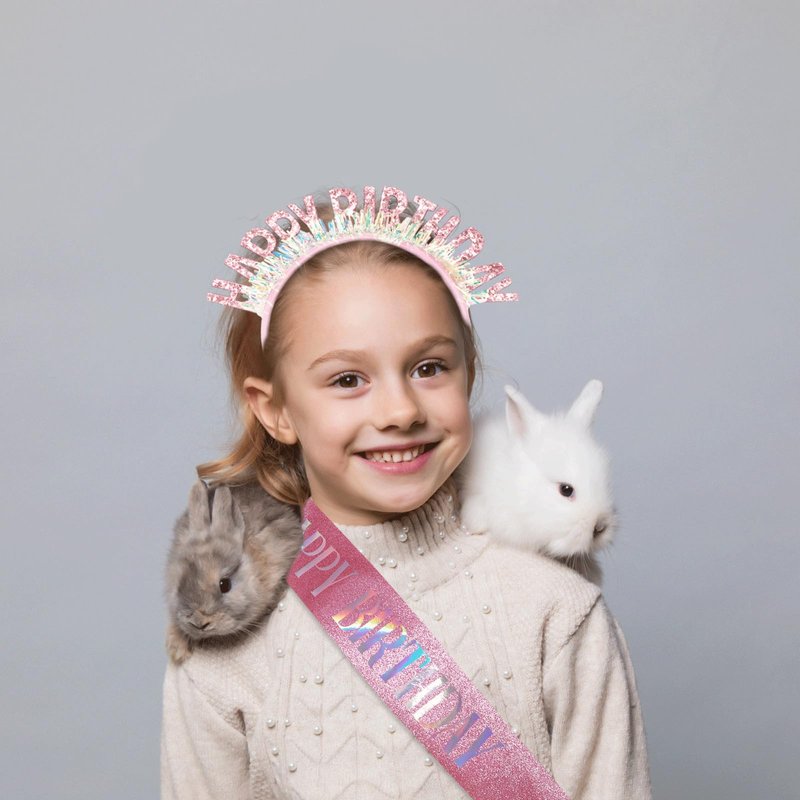 - [Elegant Appearance]: Sparkling birthday sashes and headband will make you stunning at the party. No matter where you are, you are the most shining princess and will be the center of attention. Just leave a colorful mark on your birthday and give yourself a grand ceremony.