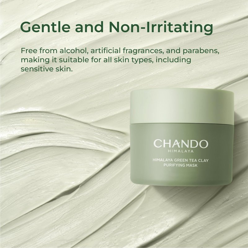 Discover the purifying power of green tea with CHANDO Himalaya Green Tea Clay Purifying Mask. This green clay mask effectively unclogs pores, absorbs excess oil, and removes dead skin cells for a refreshed, smooth complexion. Infused with 100% natural Himalayan green tea freeze-dried powder and green clay, this mask offers deep cleansing while being gentle on the skin, making it perfect for oily and combination skin types.