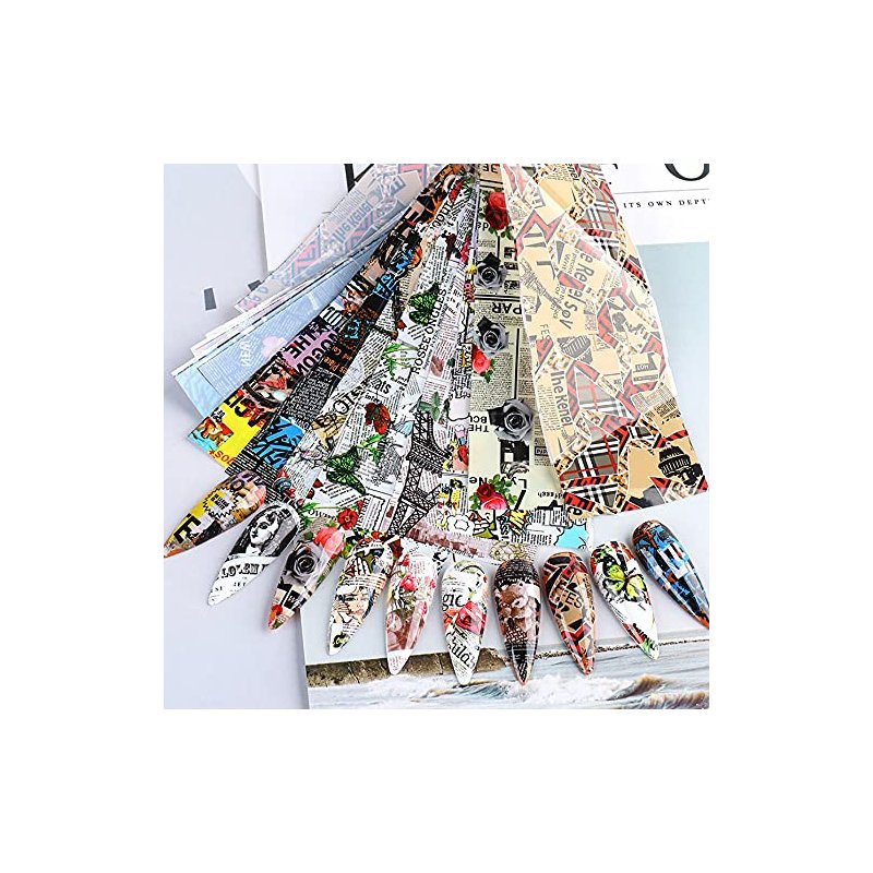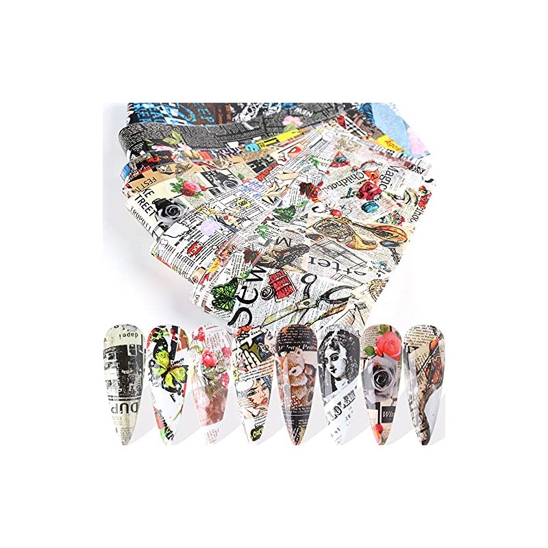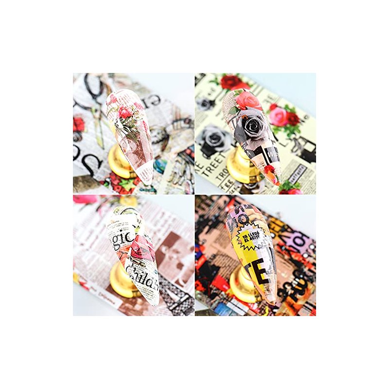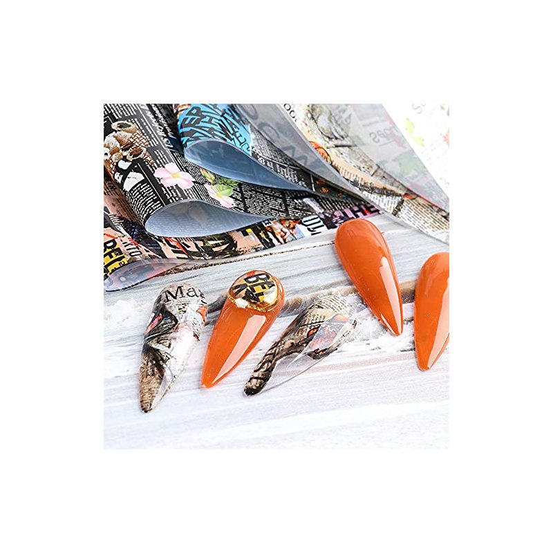 • Package Content: 10 sheets nail transfer foil have newspaper magazine pattern designs. The size of each sheet is Approx. 1.5inches*7.8inches (4*20cm).