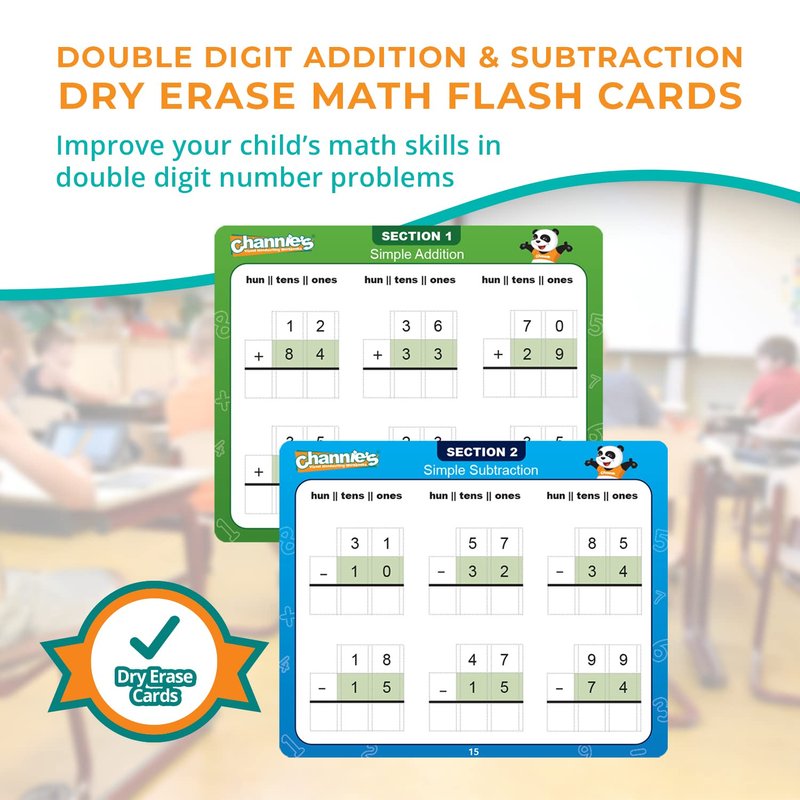 Channie’s Double Digit Addition and Subtraction Dry Erase Flash Cards are meant to help first to third graders develop the love for math!