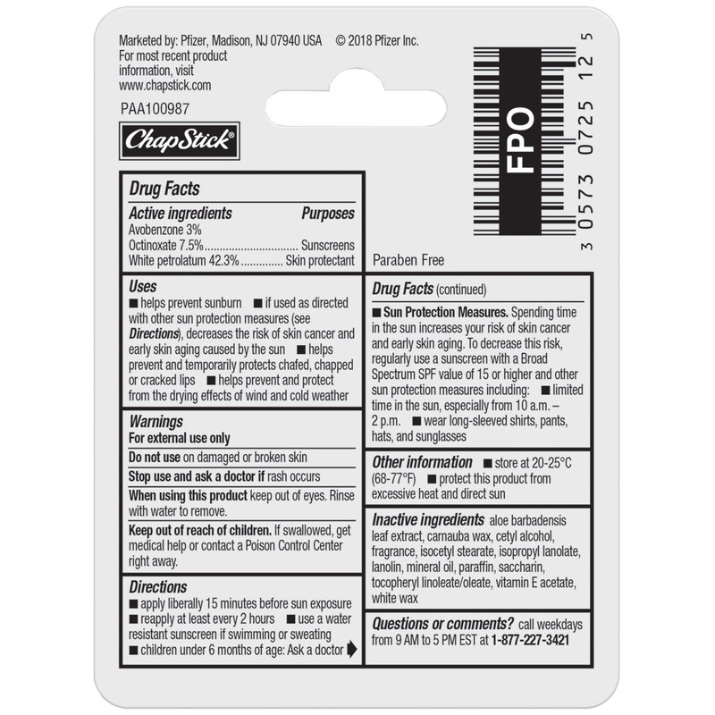 - Indulge your lips with the classic ChapStick Original Moisturizer with broad-spectrum SPF 15 protection
