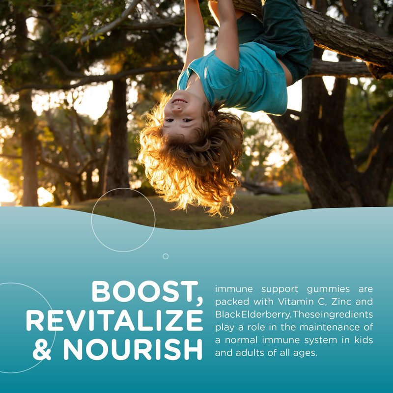- IMMUNITY GUMMY - I is for Immunity gummy vitamins are packed with 45 mg of immune support Vitamin C, 3.7mg of Zinc and 50 mg of Black Elderberry to help support overall immune health and wellbeing.