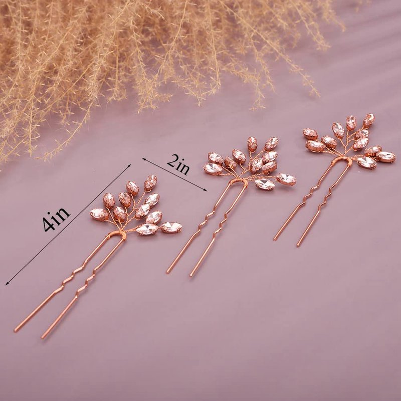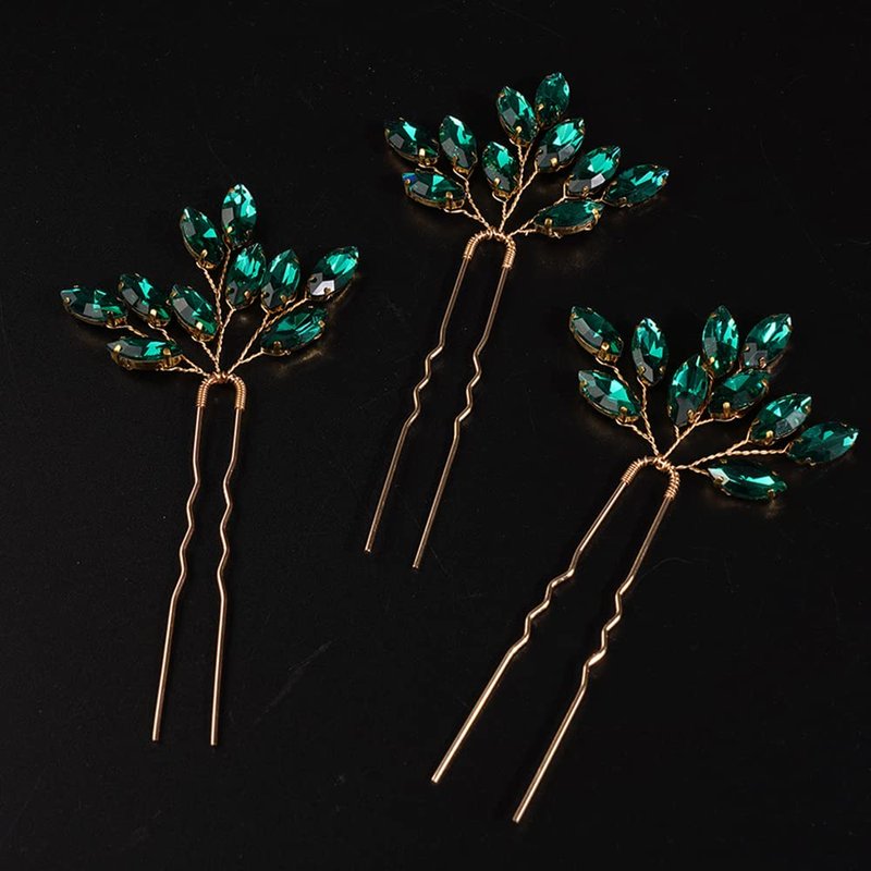 Chargances 3pcs Crystal Wedding Hair Pins Malachite Green Rhinestone Bridal Hair Pins Handmade Bridal Hair Accessories for Women Girls Bridesmaids (Malachite green)