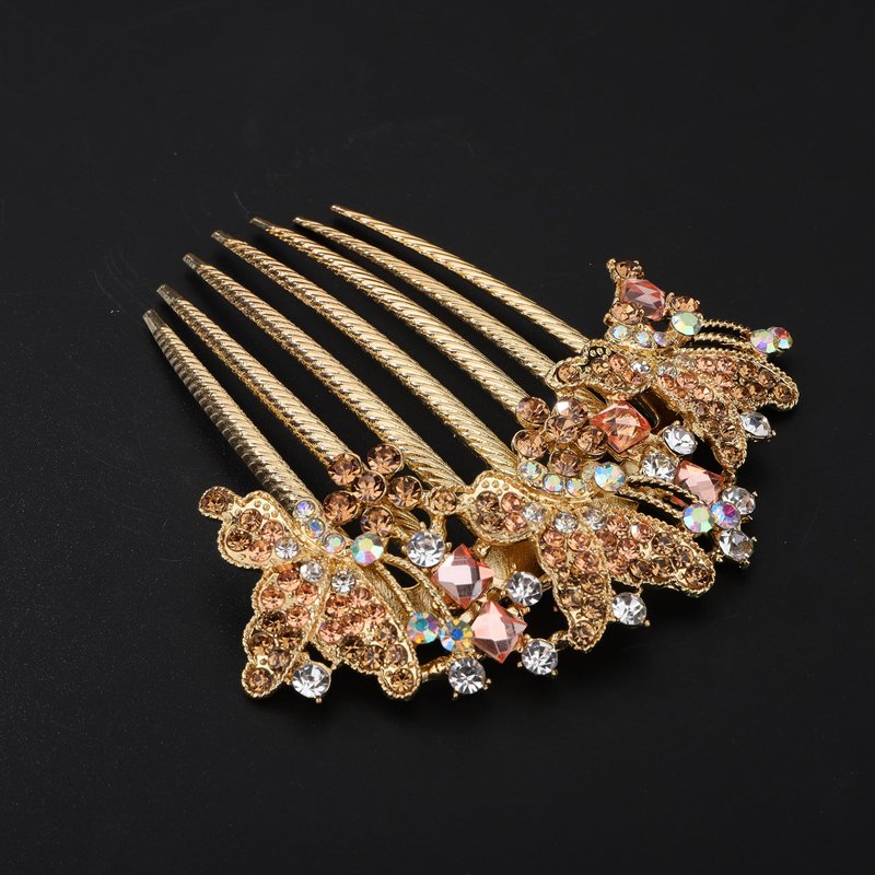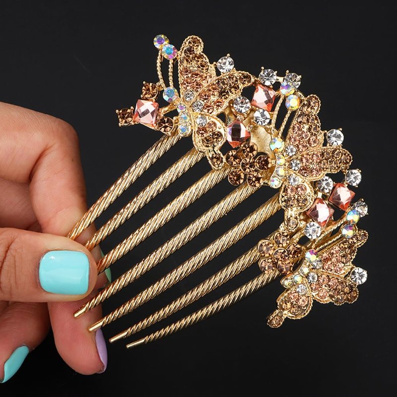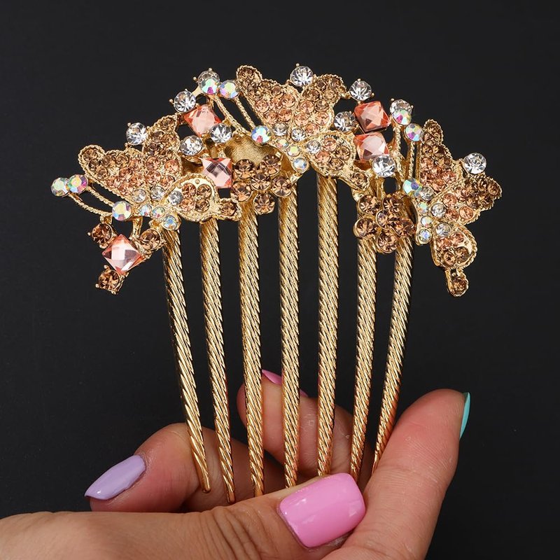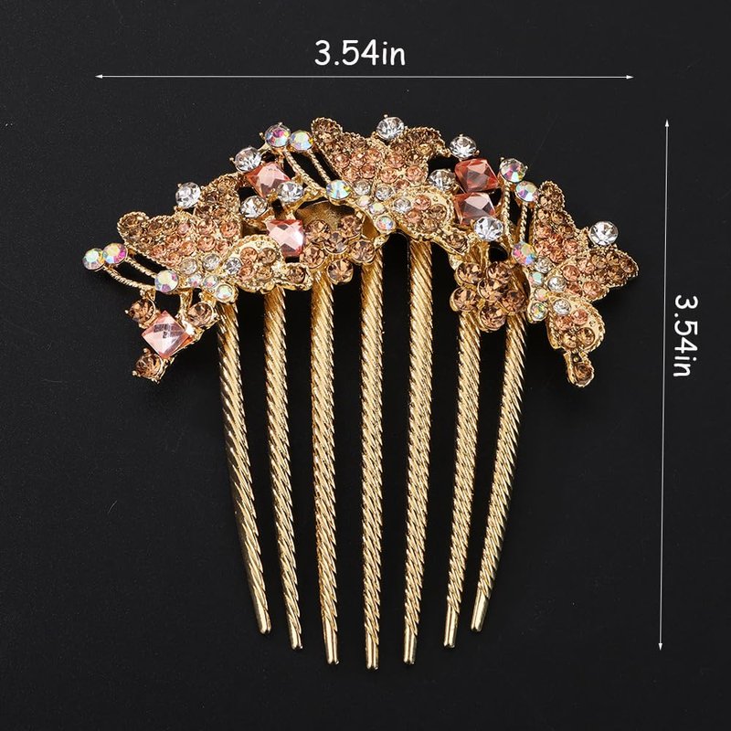 Chargances Butterfly Luxury Crystal Hair Comb Boho Shiny Flower Hair Comb Bridal Wedding Gold Rhinestone Hair Side Combs Hair Accessories Headpiece for Women and Girls (Gold)