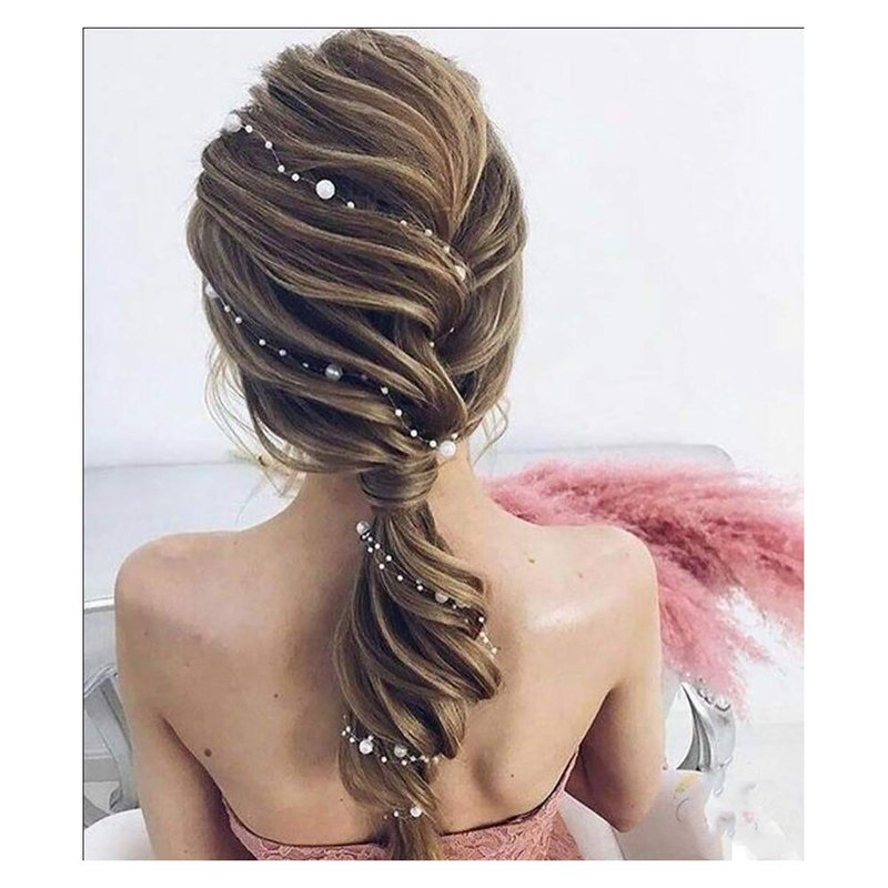 Chargances Handmade Boho Bridal Hair Vine Set - Pearl Ivory Wedding Headpiece with Long Headband and Hair Jewelry (Silver)