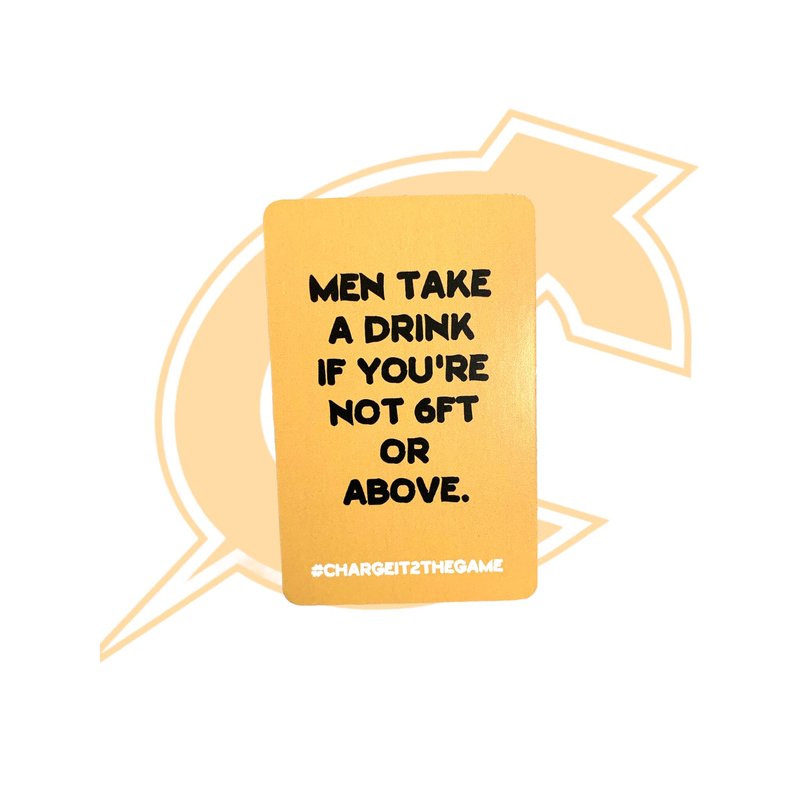 ntroducing Charge It 2 The Game Drinking Cards Vol. 2: The Ultimate Party Game for Adults! Get ready to take your party to the next level with Charge It 2 The Game Drinking Cards Vol. 2! Packed with 90 hilarious cards featuring wild dares, fun challenges, and "finish-the-lyrics" prompts, this game guarantees unforgettable fun for any gathering. Whether you’re hosting a bachelorette party, celebrating a 21st birthday, or enjoying a cozy date night, this drinking card game will have everyone laughing, bonding, and creating memories to last a lifetime. These cards are designed to turn any occasion into an epic experience. From girls' nights and holiday parties to vacations and Friendsgiving gatherings, each card brings excitement and energy that keeps the good times rolling. Why spend money on expensive nights out when you can create legendary moments in the comfort of your home with this ultimate party game? With Charge It 2 The Game Vol. 2, the rules are simple, and the fun is endless. Just draw a card, follow the prompt, and let the laughter and camaraderie unfold. It’s perfect for everything from bachelor parties to college parties, and it even works for smaller groups like couples’ game nights or kickbacks with close friends. No matter the event, this adult drinking game delivers unmatched entertainment. Skip the boring games and bring on the dares, challenges, and hilarious prompts that keep everyone fully engaged. Perfect for adults looking for fun and unique ways to celebrate, this game adds energy and excitement to every occasion. Charge It 2 The Game Drinking Cards Vol. 2 is more than just a game; it’s the secret ingredient to making every moment unforgettable. Whether you're planning a night in or throwing a big party, this adult party game has you covered. Grab your deck today and turn up the fun! 🎉