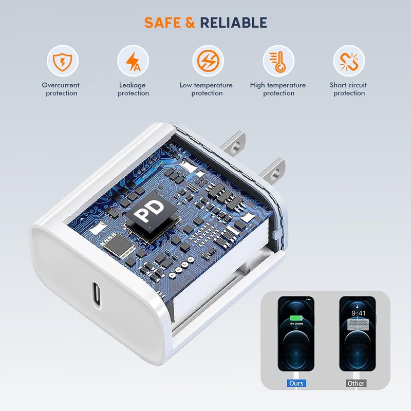 - ⚡ 【iPhone 15 Charger Fast Charging】Equipped with Fast iPhone Charging USB Type C power delivery Woven Charge Cable Cord wall plug, PD 3.0 Quick-Charge USB C port provides Max 20W output power, charge your device up to 3X faster than original 5W charger, charging your iPhone up to 50% in just 35 minutes, saving over 1.5hrs for you. Helps You Work Efficiently.