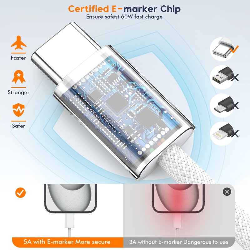 With MFi Certified Chip, 6FT USB-C iPhone Charger Cord have no more annoying messages, no constant reminder that the cord can't charge your device.