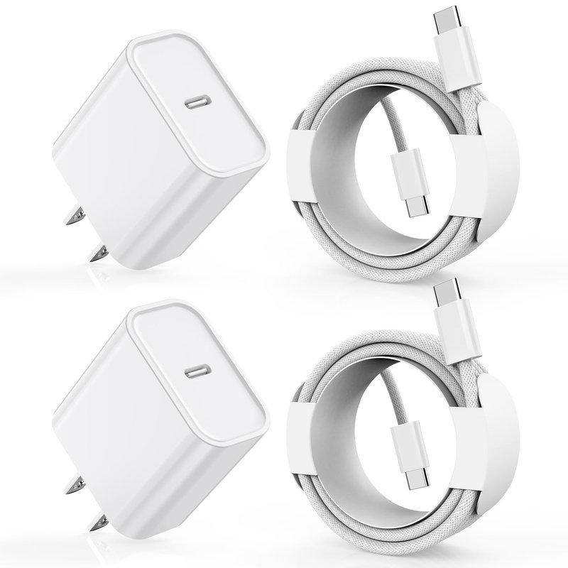 - ⚡ 【What you get】 2Pack 20W USB C Charger Blocks and 2Pack USB C to USB C Cable(iPhone 15 New braid woven cord). We are very confident in the long-lasting performance of the certified USB C iPhone wall charger and power cord. Just contact us and we can provide the brand with additional worry-free product support and a free customer service store!