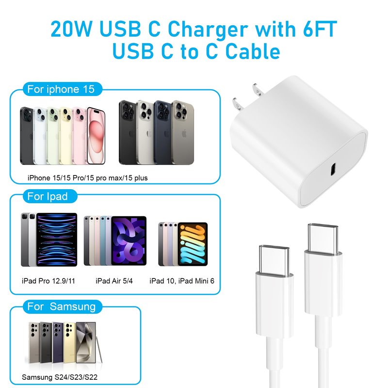 - 【Wide Compatibility】 USB C Wall Charger compatible for iPhone 16 /16 Pro /16 Pro max 15/15 Piro/15 Plus/15 Pro Max, Pad Pro 12.9 inch 6th 5th 4th 3rd, Pad Pro 11-in. 4th 3rd 2nd 1st, Pad Air 5th 4th generation, Pad Mini 6, Pad 10. Whether you need to charge your phone or tablet, this charger is capable of delivering a reliable and stable power supply for all your devices.
