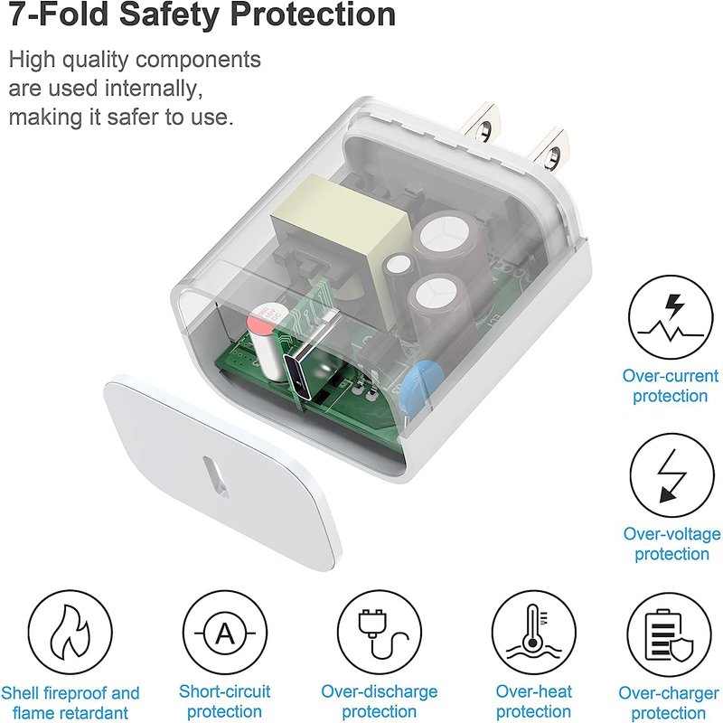- 【Superior Safety & High-Speed Data Transfer】This 20W i.phone charger block has multiple safety system including short-circuit protection, high-voltage protection.etc, the ETL certified wall charger built-in over-voltage protection, protect your devices from overcurrent, overvoltage, short circuit and overheating, ensures complete protection for your devices.Support 480Mbps Sync/Data transfer speed; 100% flawless compatibility with Phone/Pad devices.