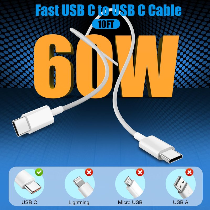 - 【Fast Charging 10FT USB C Cable】With the intelligent chip USB-C to C cable, friendly reversible design, charging speed max up to 3A, also support 480 Mbp/s fast data transmission. 10FT length can give you more space to move while charging.