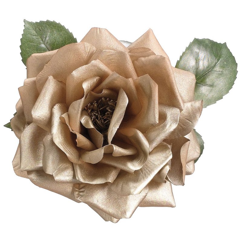 Charisma Open Rose Artificial Flower Hair Clip/Pin Brooch (Champagne)