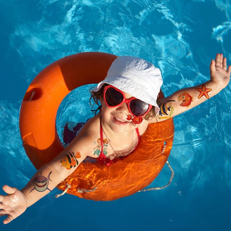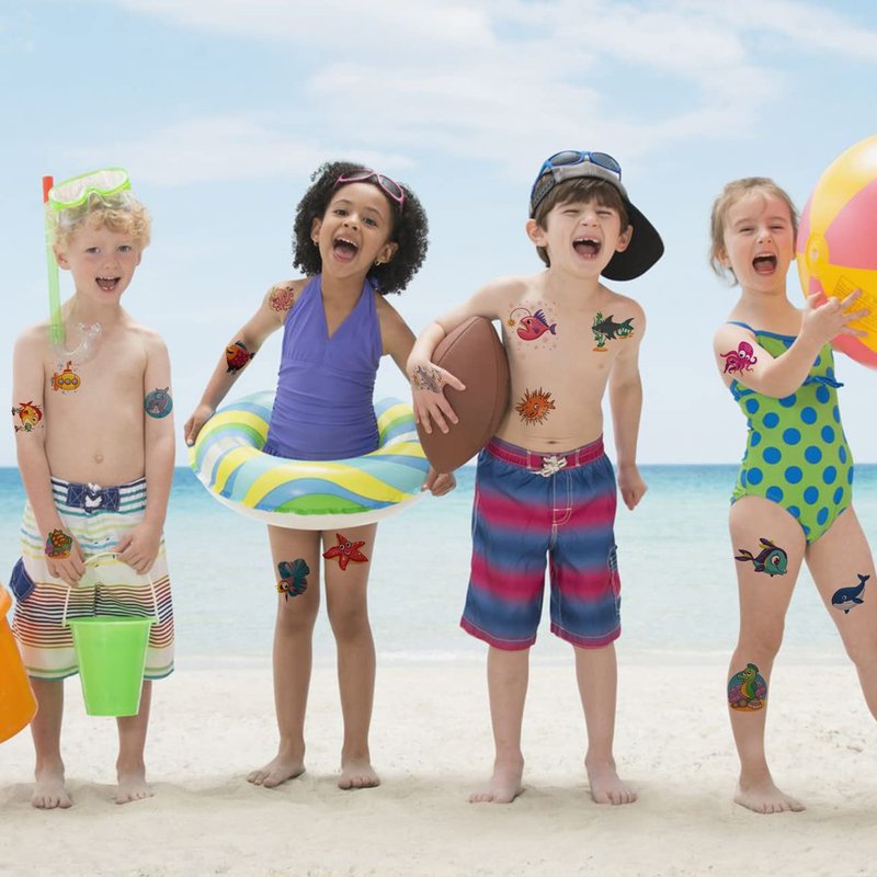 - ⚡Kids Sea Creature Tattoo Stickers -- Our fish tattoos are safe for your little ones,each tattoo is made of standard quantity material and green paper, which is safe and non-toxic. These are kids removable temporary tattoos! With these fake tattoos, your kids can deck themselves out with colourful designs that wash or peel off later. Have fun with our collection of removable, temorary tattoos for kids.