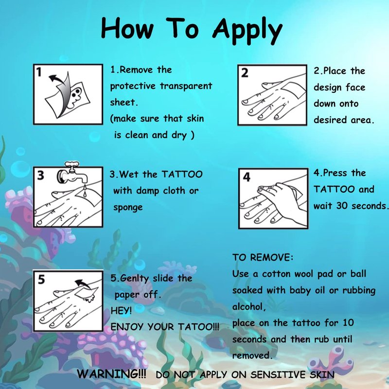 - ⚡Multifunction Uses -- These awesome Sea Creature tattoos can be used in various occasions, ocean birthday parties, christmas party, gift bag fillers, party favors for kids,sea animls party decorations, kids summer party supplies!! You can apply them to your body or some smooth objects, for example, glass, stationery, paper, stainless steel, plastic, mobile phone shell.