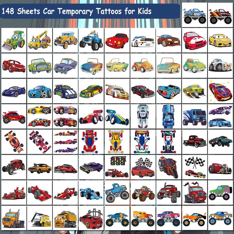 - ⚡Multifunction Uses -- These awesome car tattoos can be used in various occasions, birthday parties, christmas party, gift bag fillers, party favors for kids, race car party decorations, kids party supplies!! You can apply them to your body or some smooth objects, for example, glass, stationery, paper, stainless steel, plastic, mobile phone shell.