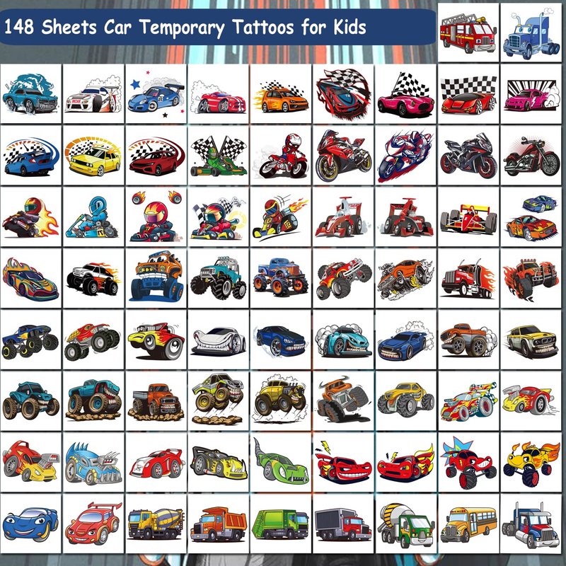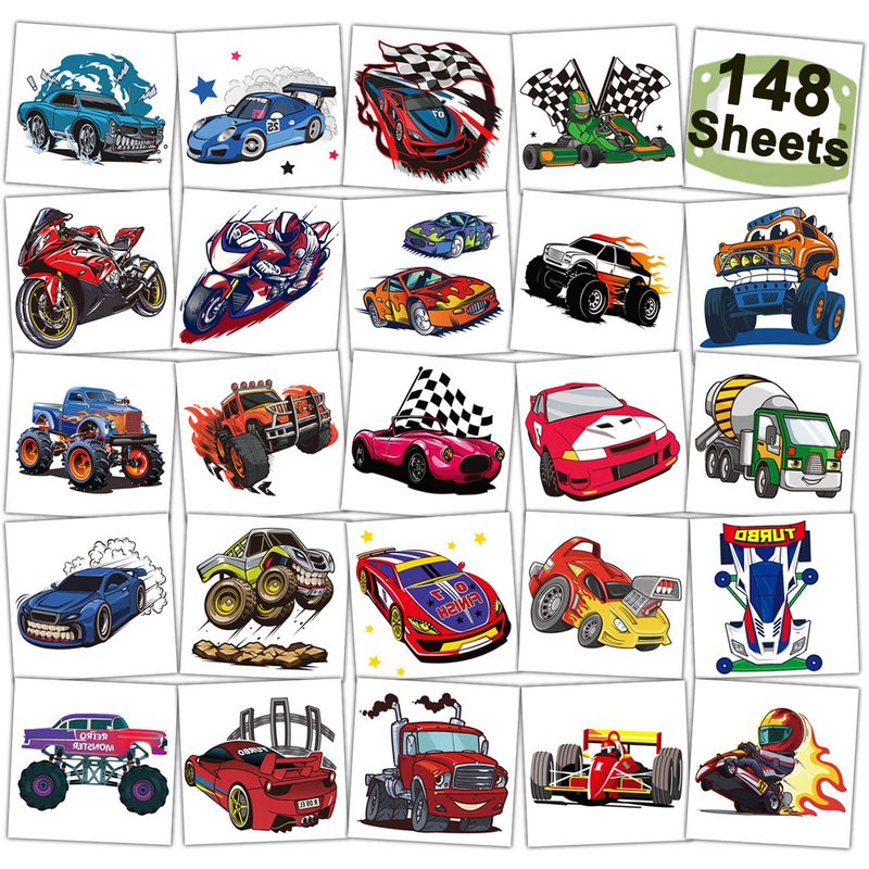 - ⚡Individually Wrapped Sheets No Need to Cut -- 148 PCS race car tattoos individually wrapped to be easily included in a party gift bag or kids stocking stuffers. Easy to share,even if a lot of people's parties, you can have a different tattoo with others.These chic and cool tattoos will keep you and your little ones – and their friends – occupied for a while. Great for playdates, race car and truck parties.