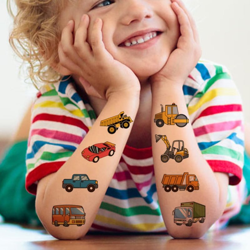 - ⚡Kids Car Tattoos for All Occasions -- These awesome tattoos can be used in various occasions, such as birthday party supplies, party decorations, kids car party favors, party bags, DIY decorations, luminous party supplies, pool and the beach or gift for kids and rewards. Kids temporary tattoos are the best party favors and goodie bags fillers ever for any kind of celebration!