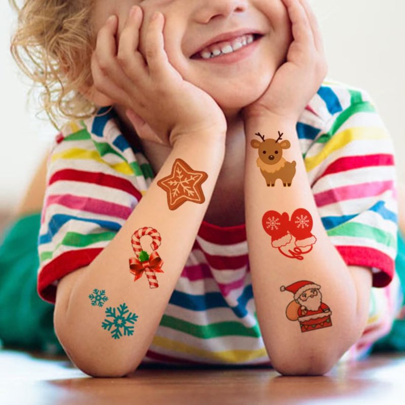 - ⚡Christmas Tattoos for Christmas Party Supplies -- These awesome Christmas tattoos can be used in various occasions, birthday parties, christmas party, gift bag fillers, party favors for kids, Christmas party decorations, Christmas stocking gift bags, kids party supplies!! You can apply them to your body or some smooth objects, for example, glass, stationery, paper, stainless steel, plastic, mobile phone shell.
