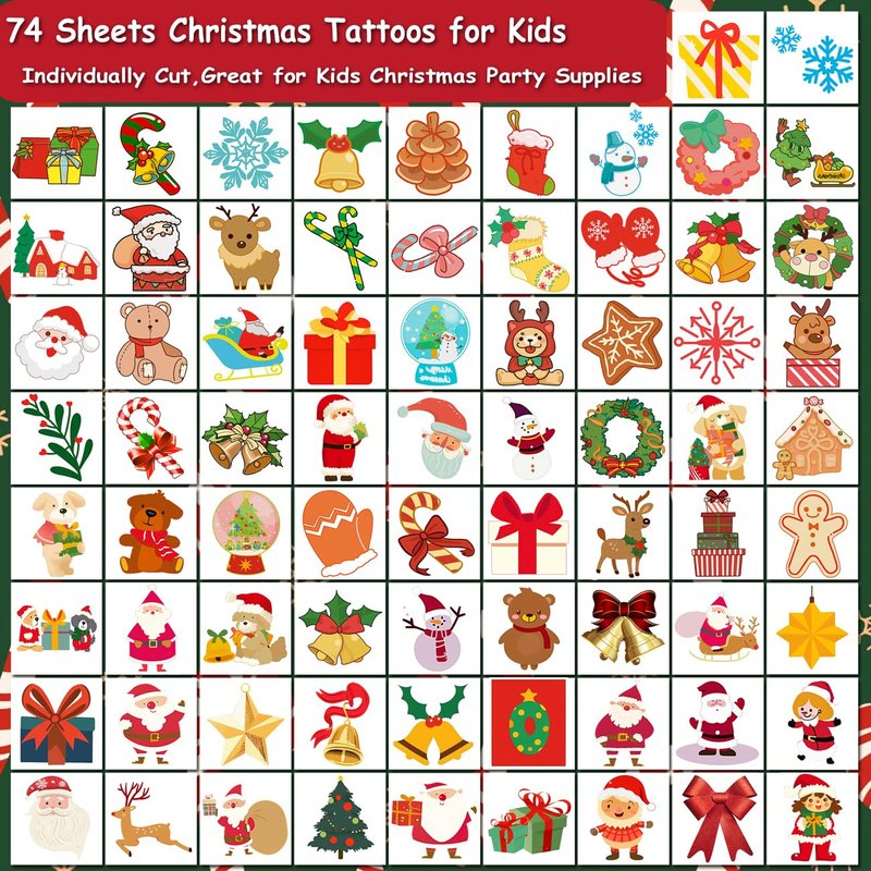 - ⚡Individually Wrapped Sheets No Need to Cut -- 74 PCS Christmas tattoos individually wrapped to be easily included in a party gift bag or kids stocking stuffers. Easy to share,even if a lot of people's parties, you can have a different tattoo with others.These adorable tattoos will keep you and your little ones – and their friends – occupied for a while. Great for playdates, Christmas parties.