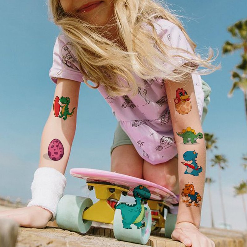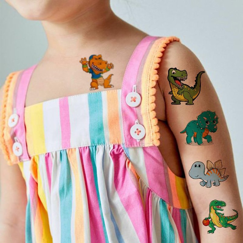 - ⚡Kids Dinosaur Tattoos for All Occasions -- These awesome tattoos can be used in various occasions, such as kids birthday party supplies, party decorations, dinosaur party favors, party bags, DIY decorations, dinosaur party supplies, pool and the beach or gift for kids and rewards. Kids temporary tattoos are the best party favors and goodie bags fillers ever for any kind of celebration!