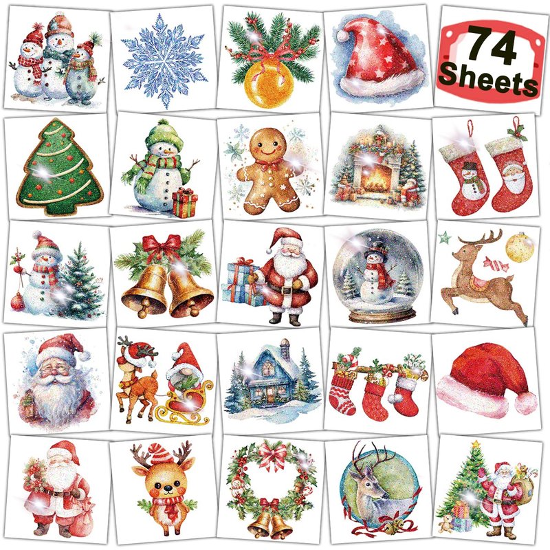 Package contents: There are 74 sheets of Christmas elements temporary tattoos
