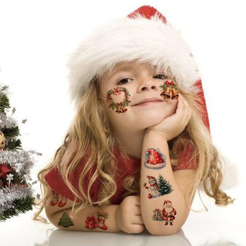 - ⚡Glitter Christmas Tattoos for Christmas Party Supplies -- These awesome Christmas tattoos can be used in various occasions, birthday parties, christmas party, gift bag fillers, party favors for kids, Christmas party decorations, Christmas stocking gift bags, kids party supplies!! You can apply them to your body or some smooth objects, for example, glass, stationery, paper, stainless steel, plastic, mobile phone shell.