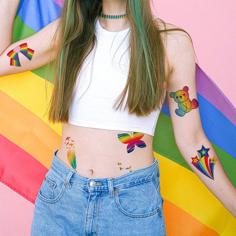 - ⚡Great For Gay Pride Celebrations Pride Festival -- Show off your tattoos anywhere, like arms, wrists, fingers, ankle, neck, shoulder, feet, legs ! You can wear them at summer holiday beach, parties, music concerts, gay pride celebrations or any occasion without spending tons of money on accessories. They are semi permanent and great for festival accessories or night club bar.
