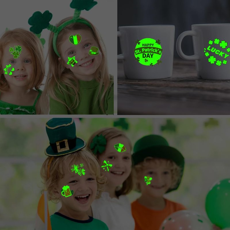- ⚡Multifunction Uses -- These awesome kids luminous St. Patrick's Day tattoos can be used in various occasions, birthday parties, gift bag fillers, party favors for kids,Irish party supplies, St. Patrick's Day gifts!! You can apply them to your body or some smooth objects, for example, glass, stationery, paper, stainless steel, plastic.