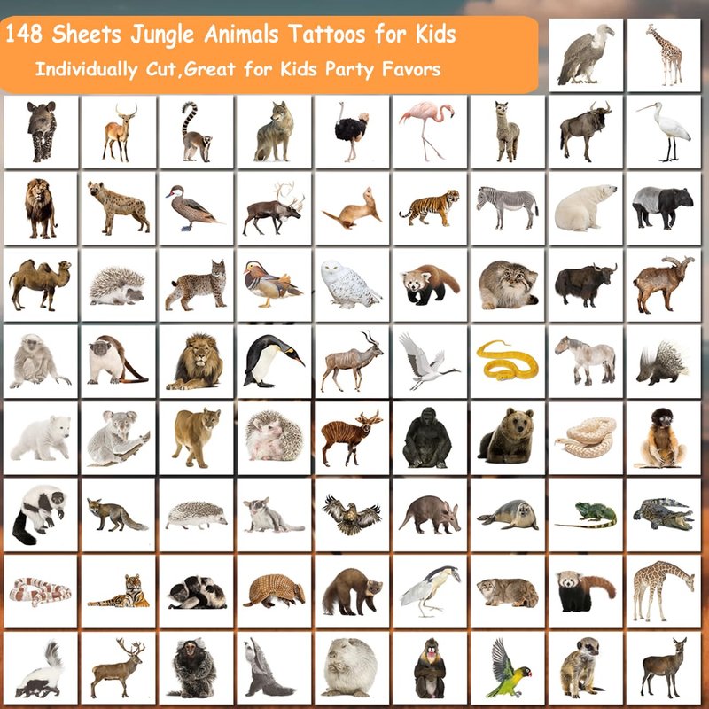 - ⚡Individually Wrapped Sheets No Need to Cut -- 148 PCS wild life tattoos individually wrapped to be easily included in a party gift bag. Easy to share,even if a lot of people's parties, you can have a different tattoo with others.These adorable tattoos will keep you and your little ones – and their friends – occupied for a while. Great for playdates, parties, or rainy days.