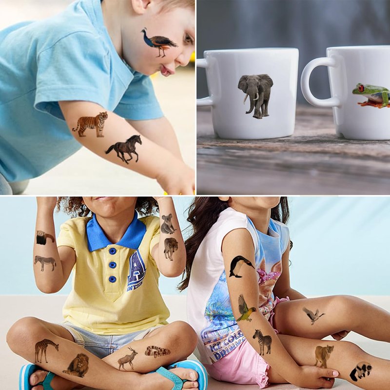 - ⚡Kids Jungle Tattoos for All Occasions -- These awesome tattoos can be used in various occasions, such as animals birthday party supplies, party decorations, safari animals party favors, party bags, DIY decorations, pool and the beach or gift for kids and rewards. Kids temporary tattoos are the best party favors and goodie bags fillers ever for any kind of celebration!