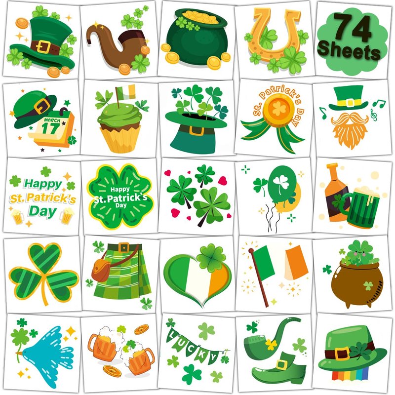 - ⚡Individually Wrapped Sheets No Need to Cut -- 74 PCS St Patrick's Day tattoos individually wrapped to be easily included in a party gift bag. Easy to share,even if a lot of people's parties, you can have a different tattoo with others.These adorable tattoos will keep you and your little ones – and their friends – occupied for a while.Great for St. Patrick's Day Party Supplies.