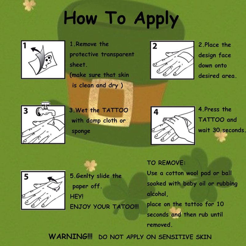 Package contents: There are 74 sheets of St. Patrick's Day elements temporary tattoos
