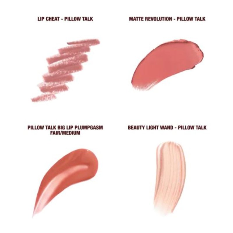 - What Else You Need to Know: It's Charlotte's universally flattering phenomenon! The Lip Cheat Lip Liner to resize and reshape your lips; a Matte Revolution lipstick, Charlotte's formula for buildable, long-lasting coverage; a Pillow Talk Beauty Light Wand for cheekbones that glow in every light, and a full-sized Plumpgasm Gloss, Charlotte's lip amplifying secret for a juicy, plumped up pout in seconds!