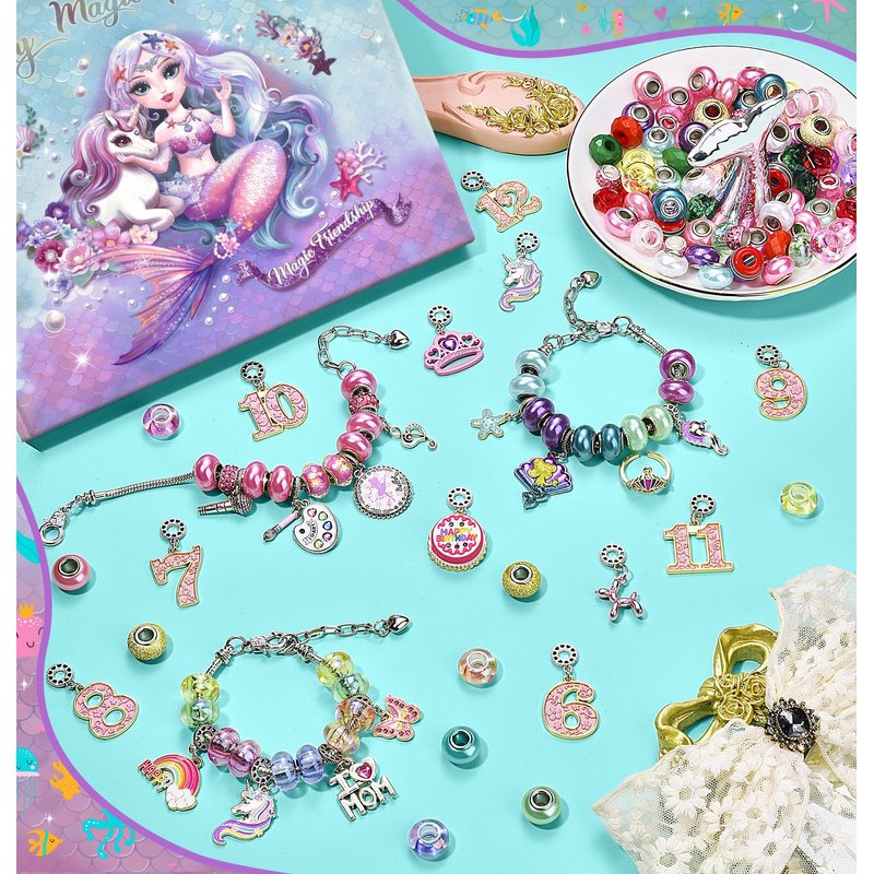 - Perfect Gift for All Occasions: Whether it's a birthday, Christmas, or just a party, our bracelet kit is the perfect gifts. It comes in a beautifully designed mermaid box, ready to be presented as a special gift. Can be stored quickly and is suitable for children to carry.