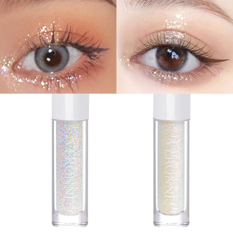 CHARMFORYOU Liquid Glitter Eyeshadow Gel Holographic & Silver Glitter Eye Shadow Makeup Set 2 pcs Shimmer Liquid Eyeshadow Waterproof Long Lasting Shiny Body Glitter Shadow for Women Girls(#01#03)